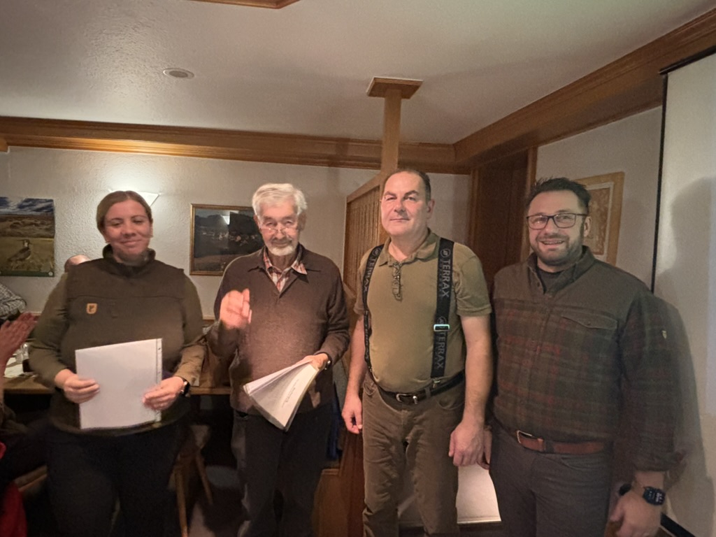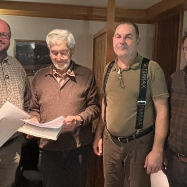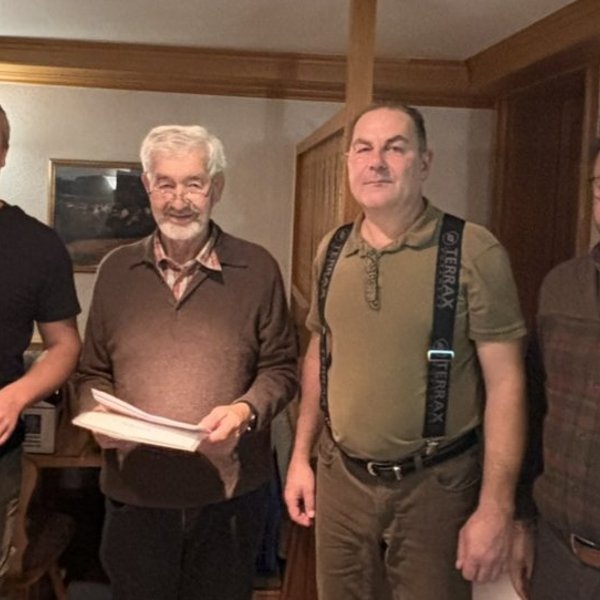 Am 24. Oktober fand eine kleine Abschlussfeier statt, bei der Kreisjägermeister Dirk Schneckenburger die Prüfungsbescheinigungen übergab. Sowohl er als auch Hundeobmann Achim Teufel bedankten sich herzlich bei allen Beteiligten – den Hundeführerinnen und Hundeführern und ganz besonders bei Hubert Emhart und Peter Froizheim, die an sieben Wochenenden als Richter im Einsatz war. Ohne dieses Engagement wäre eine solche Veranstaltung nicht möglich gewesen.
