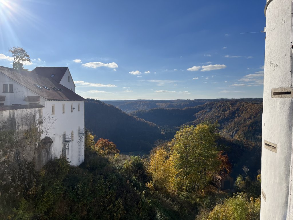 Bei strahlendem Sonnenschein führte Armin Hafner die Gruppe auf einer herbstlich bunten Wanderung durch das Donautal hinauf zur Burg Wildenstein. Unterwegs erfuhren die Teilnehmenden Spannendes über das Tal sowie über die heimische Tierwelt. Besonders beeindruckend waren die Informationen zu den Wanderfalken, die in den markanten Felsformationen des Donautals ihre Brutplätze gefunden haben.